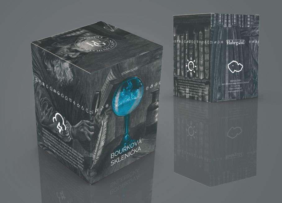 skleněnou kapkovou ampulí o průměru 70 mm a výšky 100 mm, která je hermeticky
